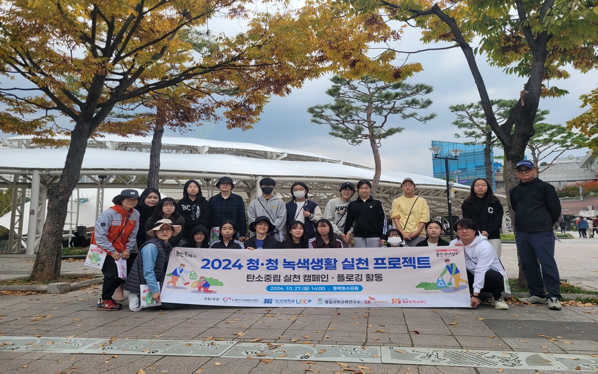 호수공원에서 플로깅 활동과 탄소중립 실천 캠페인을 진행하였다.