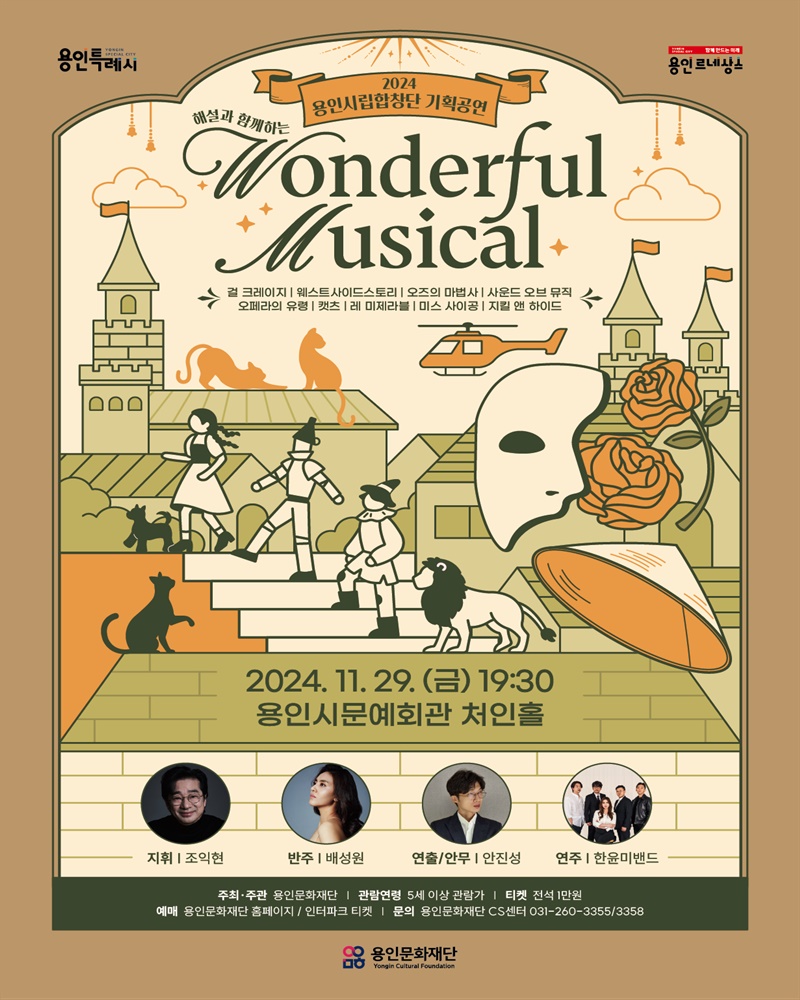 용인문화재단(이사장 이상일)은 오는 11월 29일 용인시문예회관 처인홀에서, 용인시립합창단 기획공연 ‘해설과 함께하는 Wonderful Musical’을 개최한다고 밝혔다.