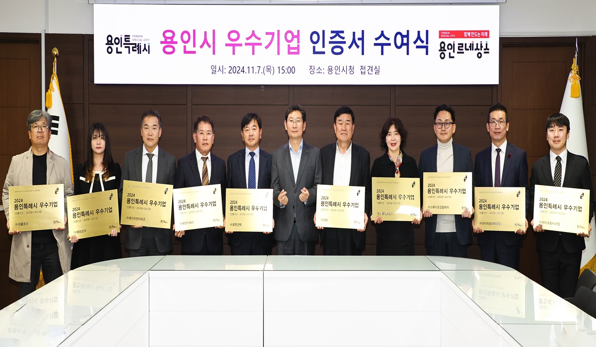 용인특례시(시장 이상일)는 올해 탁월한 성과로, 지역 경제 발전을 이끈 중소기업 10사를 2024 우수기업으로 선정했다고 8일 밝혔다.