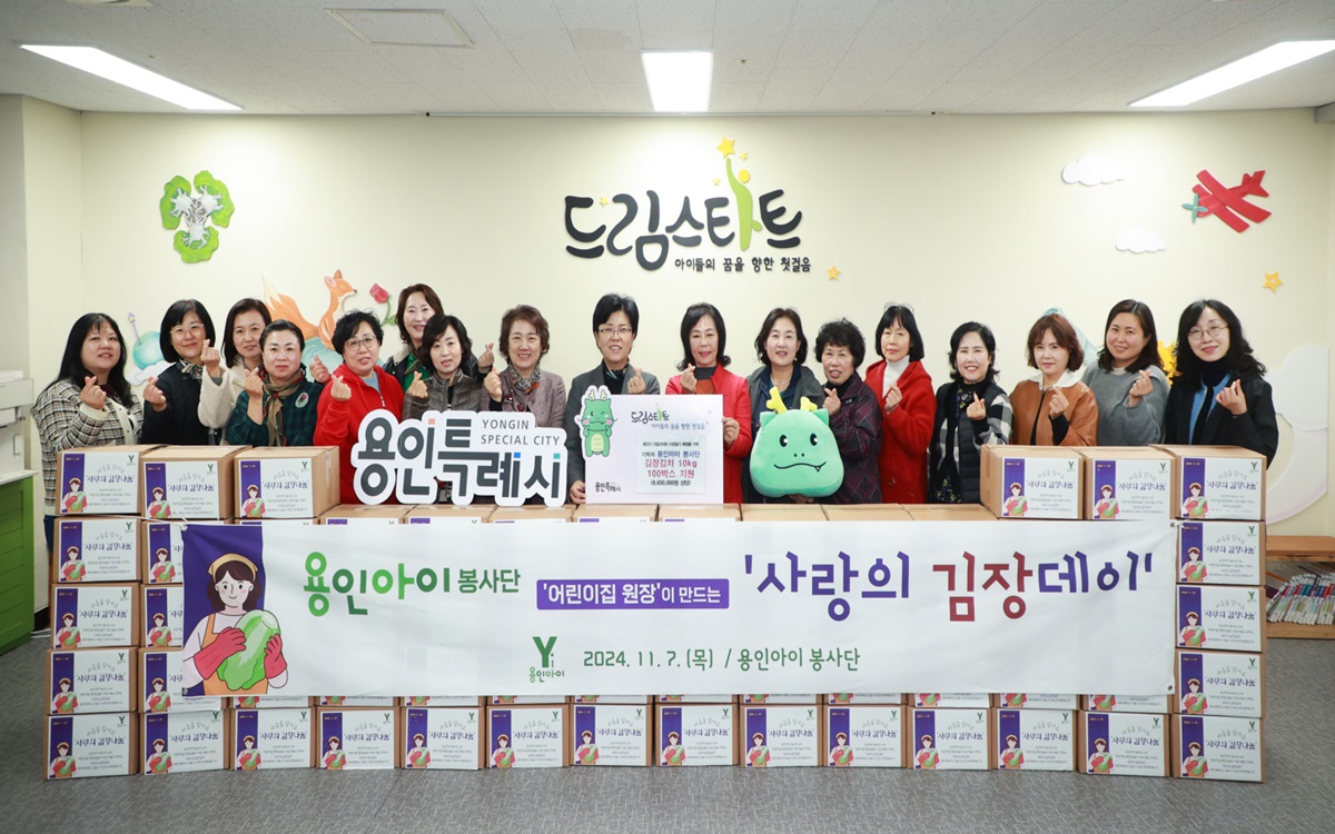 시는 용인아이 회원 20여명이 신선한 재료로 따뜻한 마음을 담아, 정성껏 준비한 김장김치를 드림스타트 대상 74가정에 전달했다.