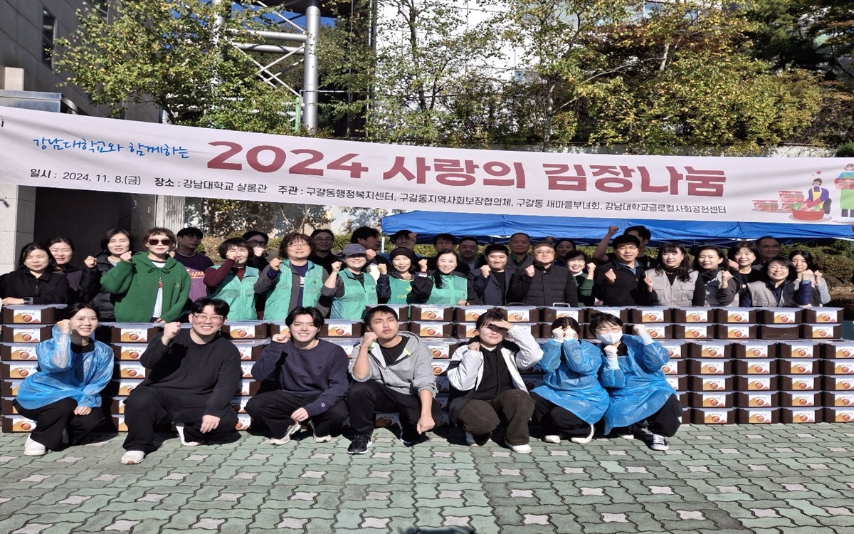 강남대학교 샬롬관에서 진행된 이날 행사에는 구갈동 각 지역단체 회원들과 강남대학교 교직원, 재학생 등 20여명이 참여해 정성껏 담근 김장김치 500포기를 홀몸 어르신, 장애인 등 취약계층 70가구에 전달했다.