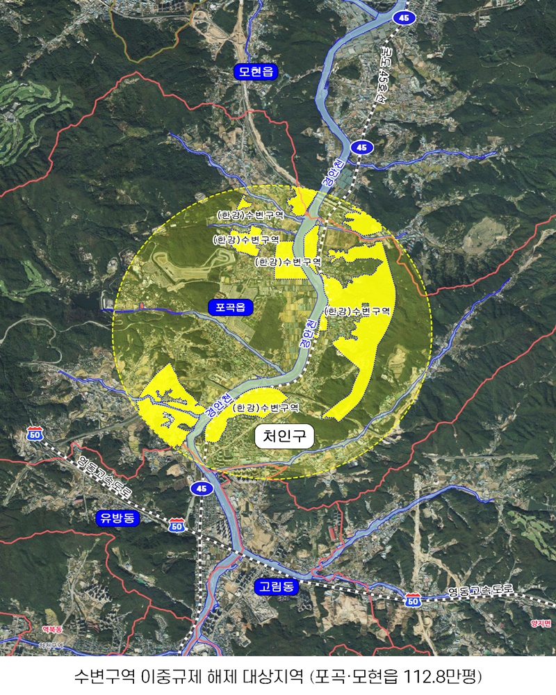 환경부가 1999년 9월 30일 「한강수계 상수원수질개선 및 주민지원 등에 관한 법률」(이하 한강수계법) 제4조에 따라, 이 일대 24.213㎢는 한강수계 수변구역으로 지정 고시[환경부 고시 제1999-153호]한 지 25년여 만에 처인구의 방대한 땅이 규제에서 해제됐다.