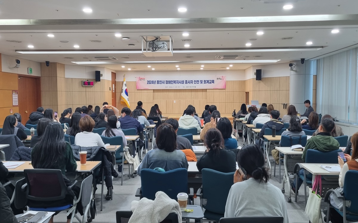 용인특례시(시장 이상일)는 20일 시청 비전홀에서, 장애인복지시설 종사자를 대상으로 안전·회계 교육을 진행했다.
