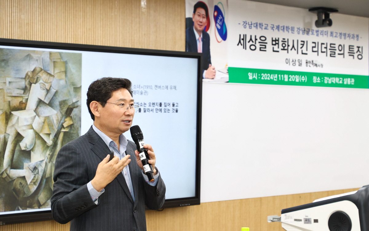 - 20일 강남대 국제대학원 강남글로벌리더 최고경영자과정 원생 대상 ‘세상을 변화시킨 리더들의 특징’ 주제로 특강 -