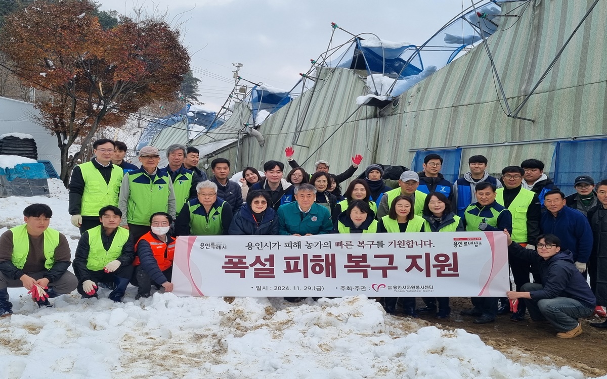 (재)용인시자원봉사센터(이사장 이상일)는 29일 폭설로 피해를입은, 남사읍 하우스 농가의 긴급 지원을 위해 자원봉사자 30여명이 자원봉사활동을 펼쳤다.
