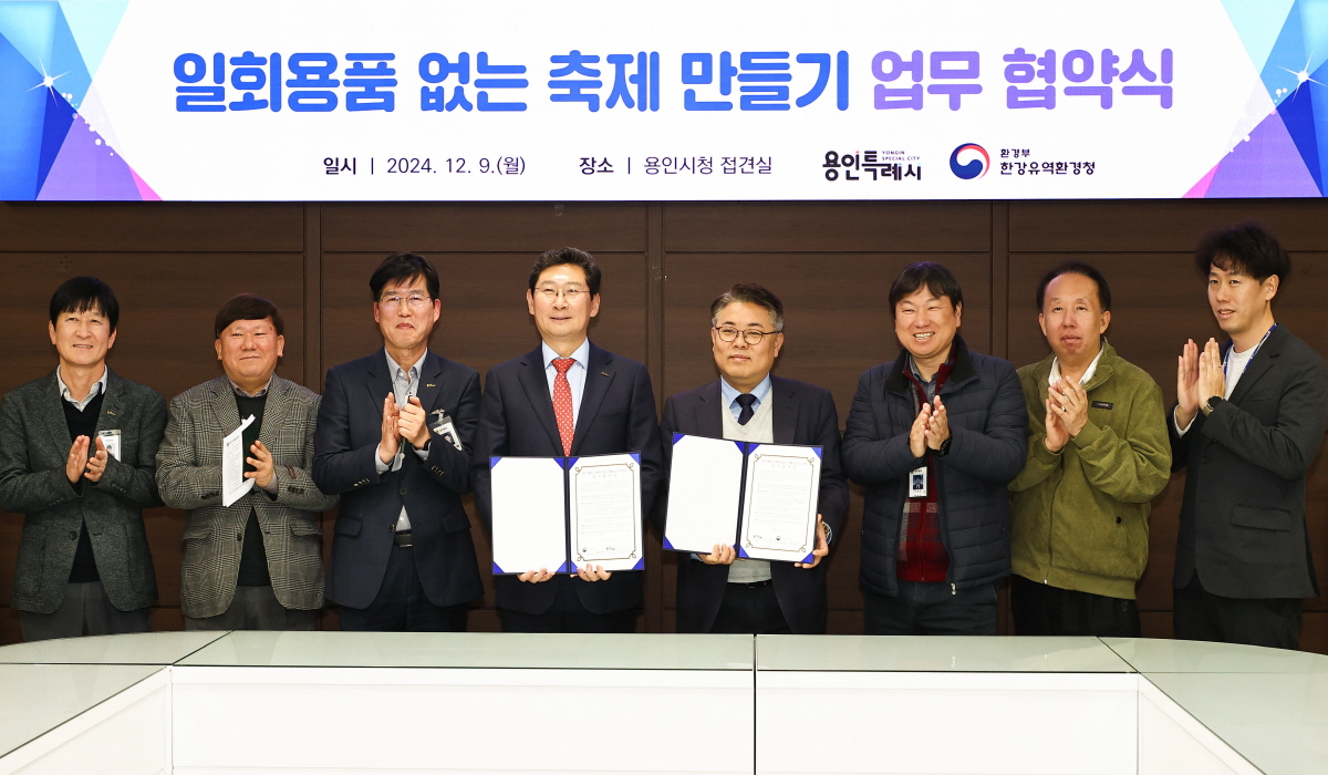 용인특례시(시장 이상일)는 9일 시장 접견실에서, 한강유역환경청과 ‘일회용품 없는 축제 만들기’를 위한 업무협약을 체결했다고 10일 밝혔다.