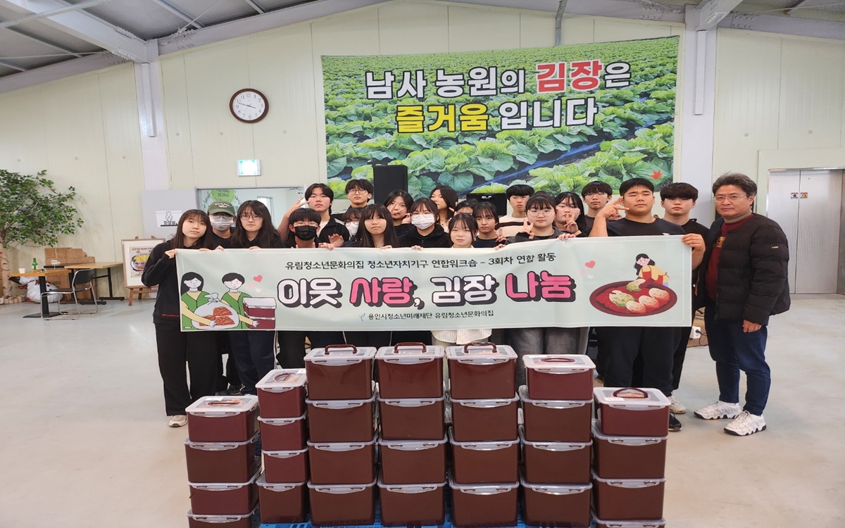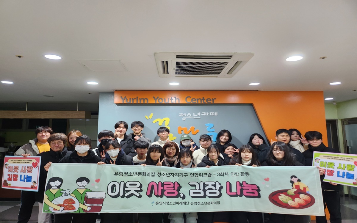 (재)용인시청소년미래재단(이사장 이상일) 유림청소년문화의집 청소년자치기구(청소년운영위원회 ‘낙락당’, 청소년동아리)는 지난 7일, 지역사회 소외계층을 위한 ‘이웃 사랑, 김장 나눔’ 연합 활동을 진행했다.