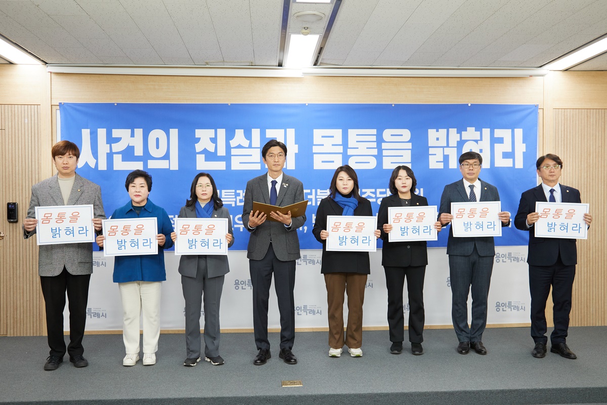 이에 용인특례시의회 더불어민주당 의원 8명은 용인시 전부서를 대상으로 전수조사, 자체감사와 상급기관 감사 실시, 이 모든 사항에 대해 지시한 몸통이 누구인지 밝힐 것을 요청하였고. 끝까지 밝히겠다고 다짐했다.