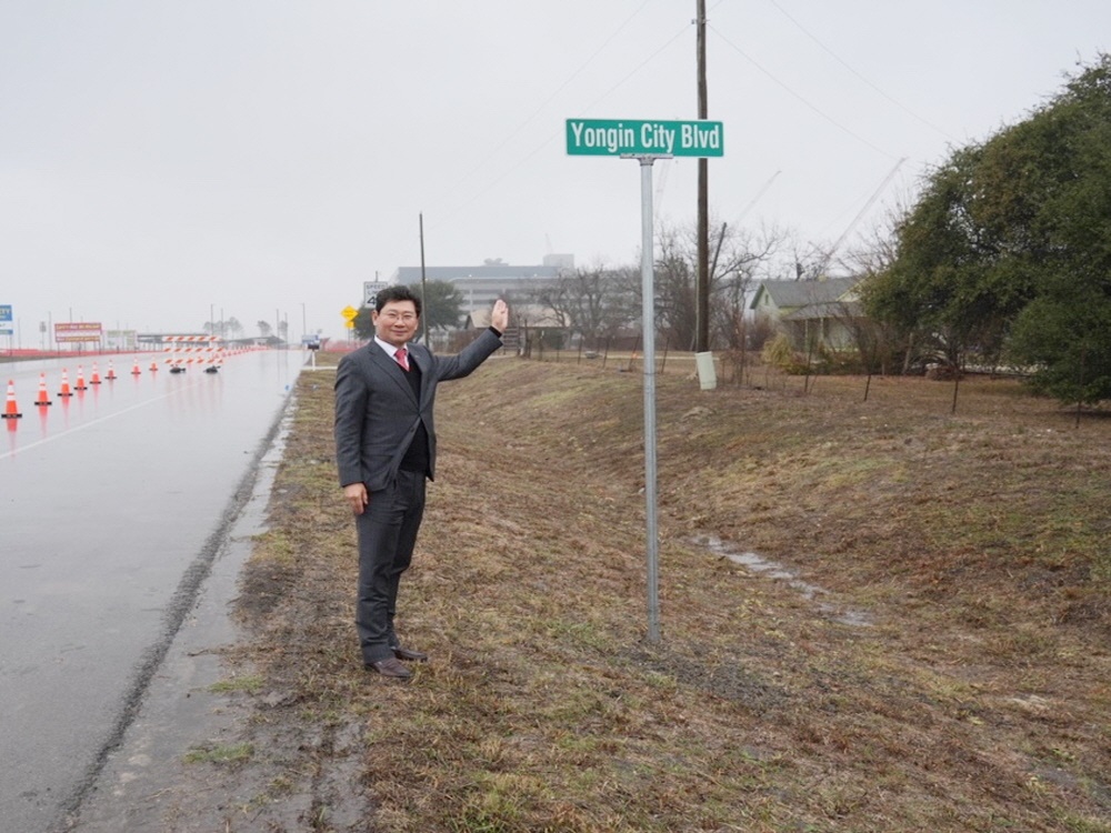 카운티, 이상일 시장 방문한 1월 9일 ‘용인시의 날’ 제정 선포…테일러시에 삼성전자가 건설 중인 파운드리 공장 앞 도로에 ‘용인시 대로’ 명예도로명 표지판 설치 -
