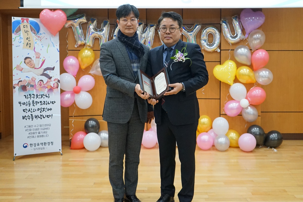 년간 불합리한 중첩규제 받은 ‘경안천 수변구역 해제’ 기여한 김동구 한강유역환경청장, 신진수 한국환경보전원장 -