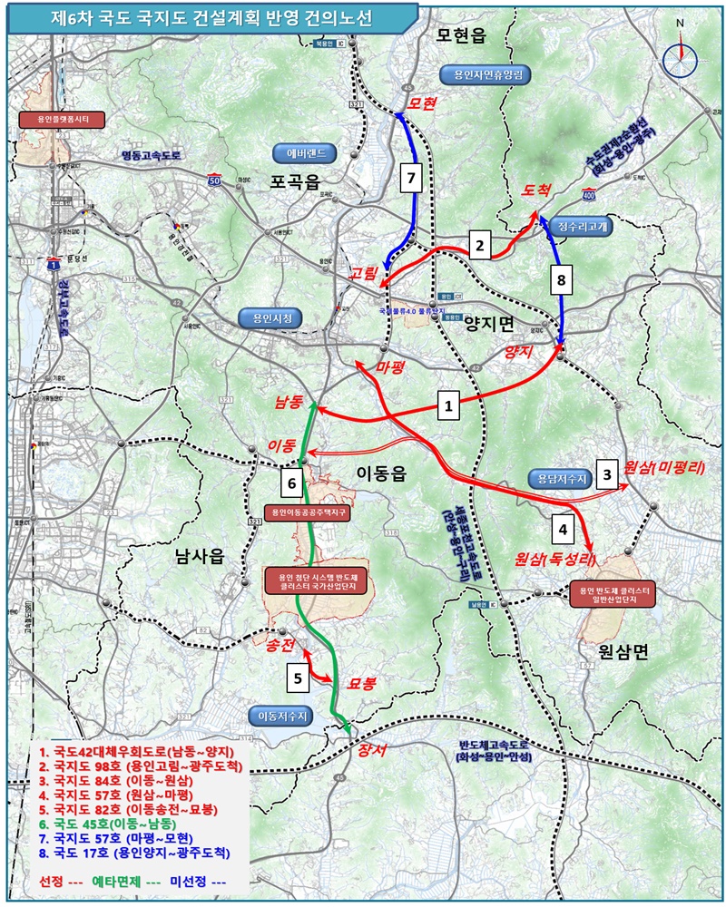 ‘국지도 57호선(처인구 마평동~모현읍)’ 신설 사업은 민자도로와 중복, ‘국지도 82호선(용인 양지면~광주 도척동)’은 사업성이 미비한 것으로 평가돼 예비타당성 조사 대상에 선정되지 않았다.