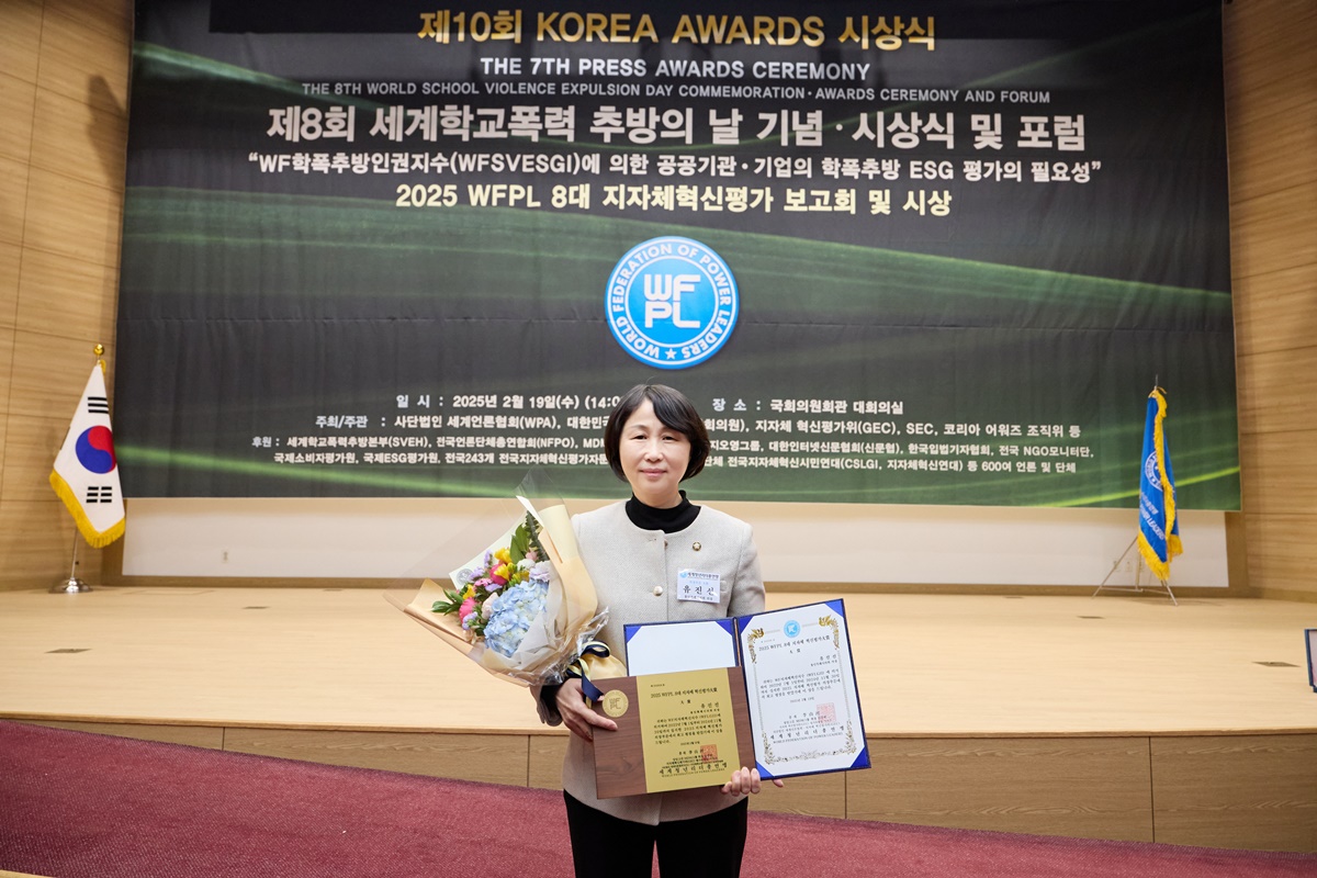 한편, ‘2025 WFPL 8대 지자체 혁신평가 대상’은 세계청년리더총연맹(WFPL) 산하 세계언론협회와 국책정책연구원이 공동 주최한 행사로, 지난 3년간 전국 243개 지방자치단체(광역자치단체 17개, 기초자치단체 226개)를 대상으로 진행된 지자체 혁신지수 평가와 교육혁신 평가 결과를 바탕으로 수상자를 선정했다. 주요 평가 항목으로는 경제적 자립 증대 기여도, 사회적 약자 배려 정책, 예산 절감 사례, 지역사회 안전시스템 구축 등 10대 부문이 포함됐다.