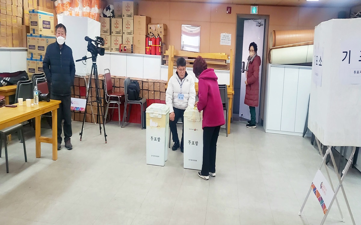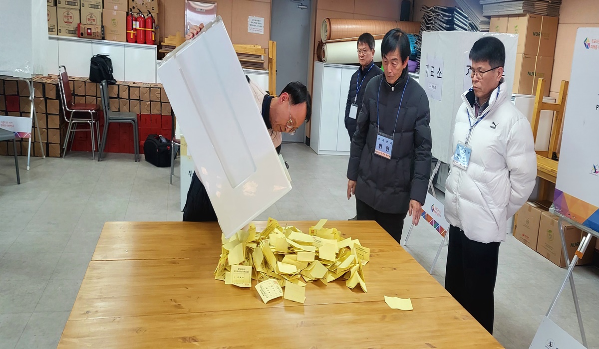 기호1번 문숙영후보 60표. 기호2번 이순환후보 196표. 무효 5표.
