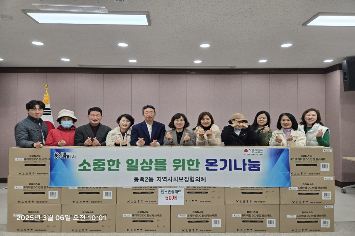 오정환 동백2동 지역사회보장협의체 민간위원장은 “추운 날씨에 생활이 어려운 이웃들에게 조금이나마 따뜻함을 전할 수 있어 뜻깊다”며, “앞으로도 지속적인 나눔 활동을 통해 더욱 살기 좋은 동백2동을 만들겠다”고 밝혔다.