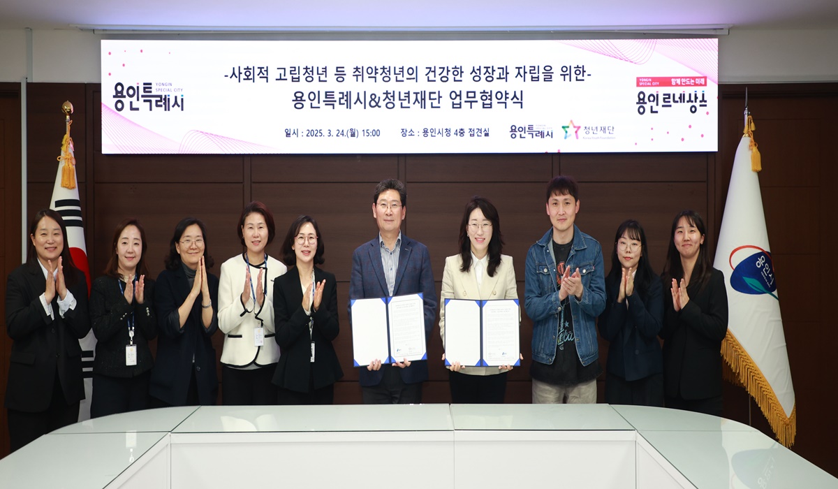 용인특례시(시장 이상일)는 지난 24일 재단법인 청년재단(사무총장 박주희)과 ‘사회적 고립청년 등 취약청년 지원을 위한 업무협약’을 체결했다고 25일 밝혔다.