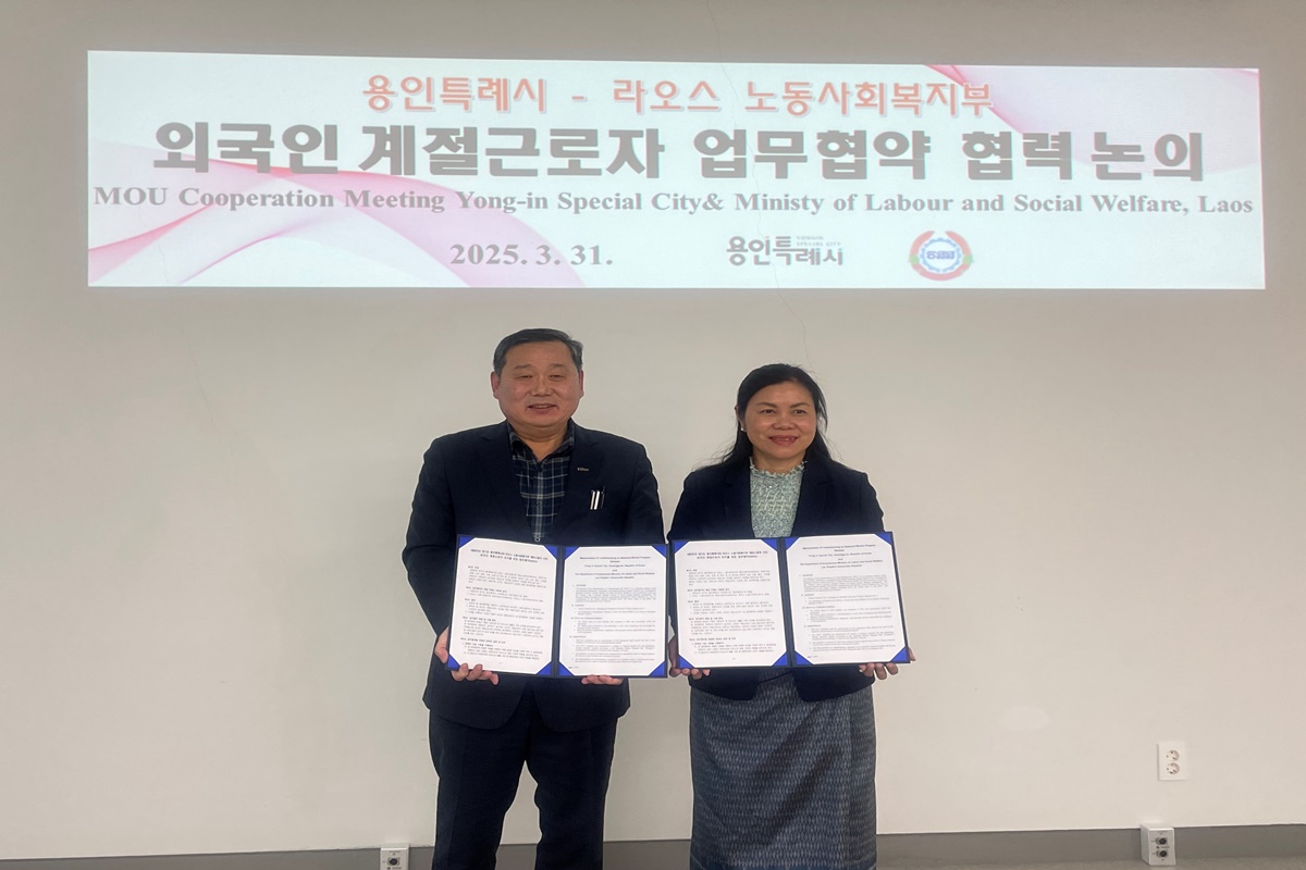 용인특례시(시장 이상일)는 31일 시청 제1별관 회의실에서, 라오스 노동사회복지부와 ‘외국인 계절근로자 도입을 위한 업무협약’을 체결했다고 1일 밝혔다.