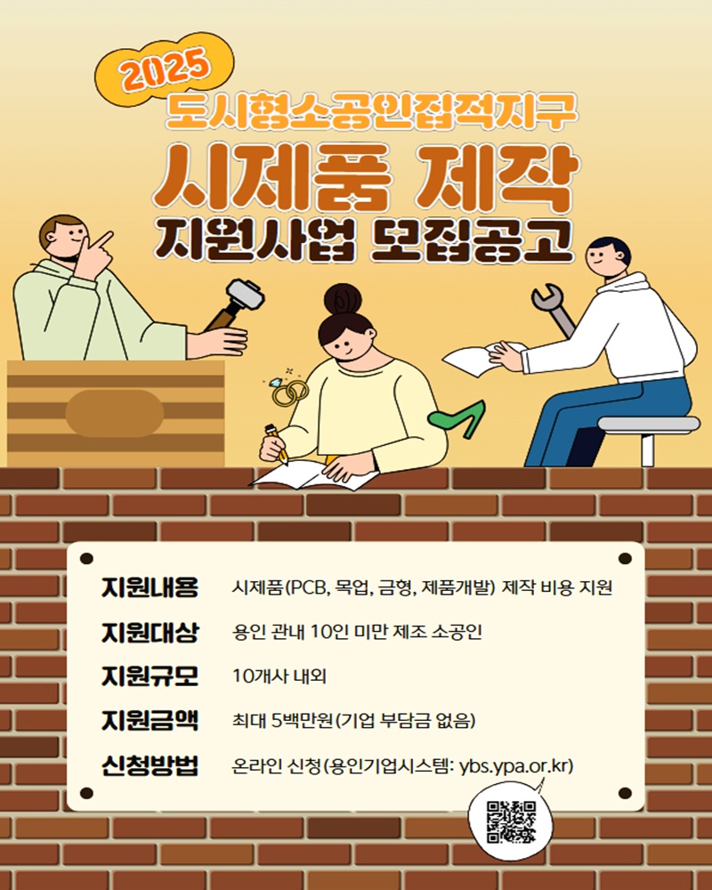 용인시산업진흥원(이사장 이상일)은 용인지역 소공인의 기술 경쟁력 강화와 매출 증대를 위해, ‘도시형 소공인 집적지구 시제품 제작 지원사업’을 추진한다고 밝혔다.