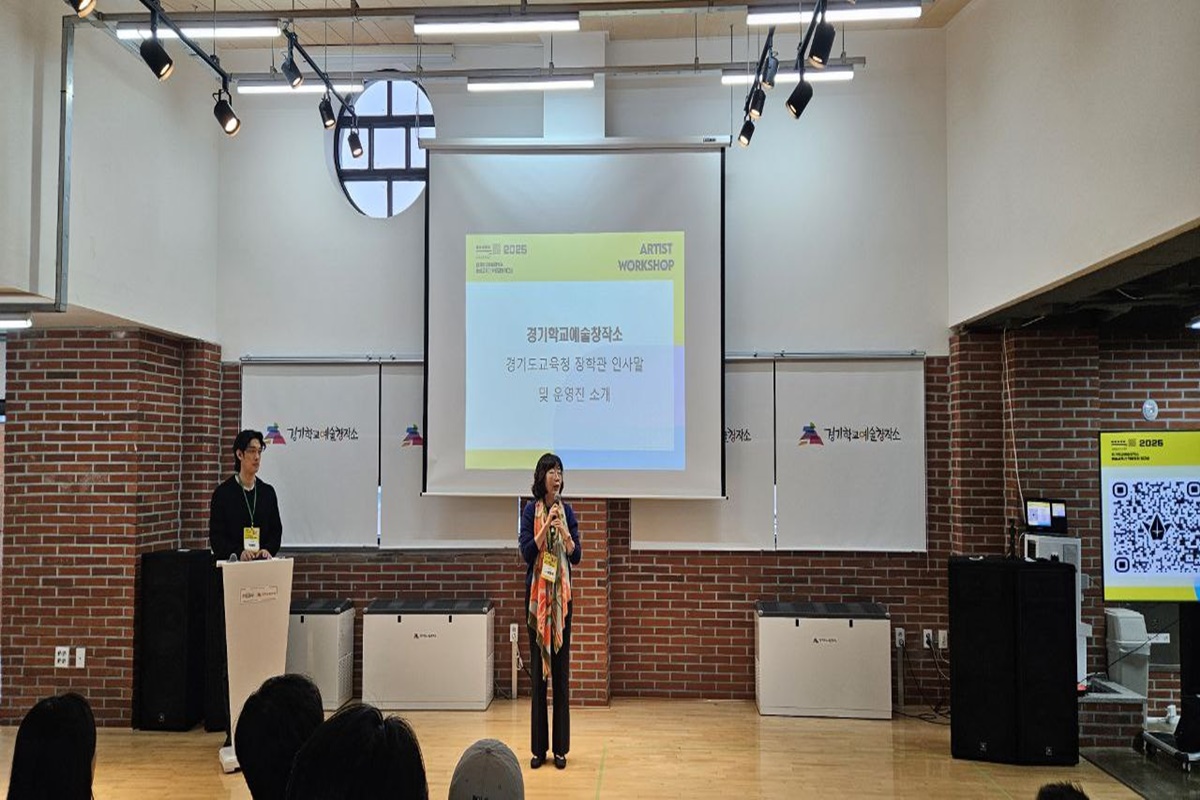 워크숍에는 2025년 경기학교예술창작소 교육활동을 담당하는 대학교수와 지역 예술가 68명이 참석했다. 주요 내용은 ▲경기예술교육 비전과 방향 공유 ▲경기학교예술창작소 전문예술교육 이해 ▲학생 안전과 성인지 ▲수업 온도를 맞추는 첫걸음 등으로 진행했다.