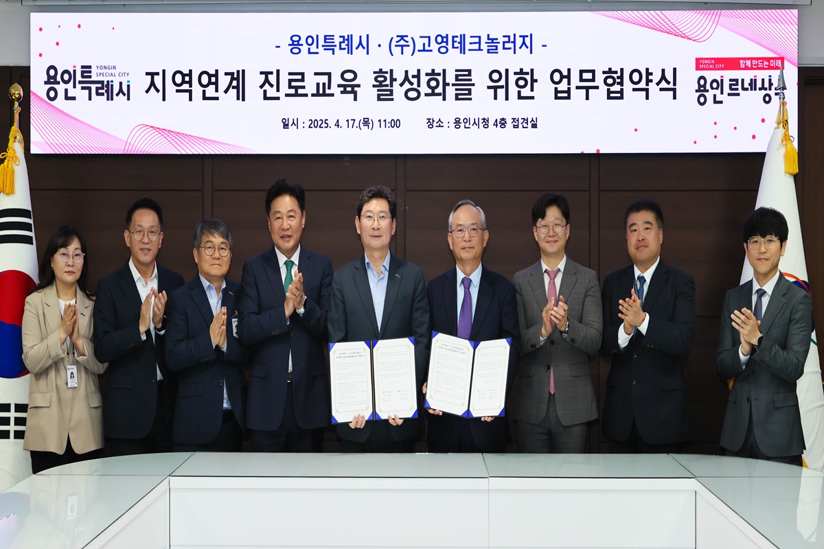 용인특례시(시장 이상일)는 17일 반도체 검사장비 기업인 ㈜고영테크놀러지(대표 고광일)와 ‘지역연계 진로교육 활성화를 위한 업무협약’을 체결했다고 18일 밝혔다.