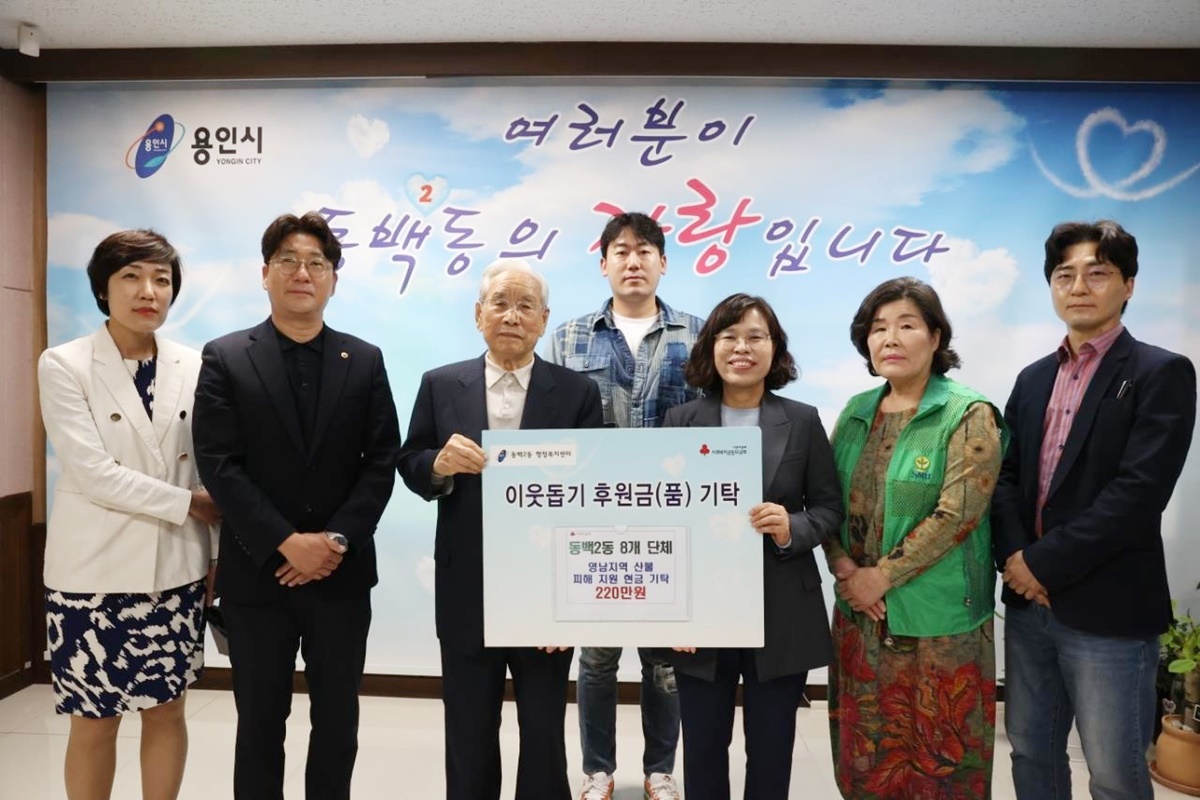 동백2동은 21일, 최근 영남지역 대형 산불 피해 복구를 위한 특별모금에 관내 8개 단체가 성금 220만 원을 기탁했다고 밝혔다. 이번 성금은 노인회, 통장협의회, 주민자치위원회, 체육회, 청소년지도위원회, 새마을지도자협의회, 부녀회, 지역사회보장협의체가 자발적으로 참여해 마련했다.
