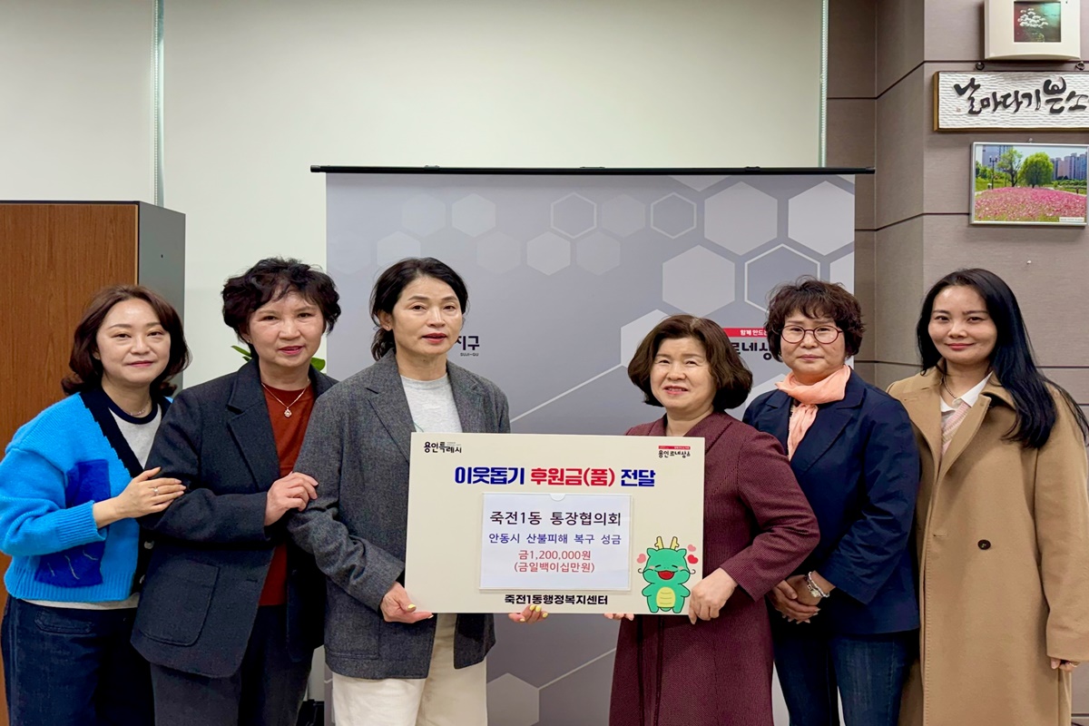 채향순 죽전1동 통장협의회장은 “예상치 못한 산불로 어려움을 겪고 계신 분들에게 작은 보탬이라도 되고 싶어 통장님들과 뜻을 모았다”며 “성금이 피해 주민들에게 용기와 희망이 되기를 진심으로 바란다”고 말했다.