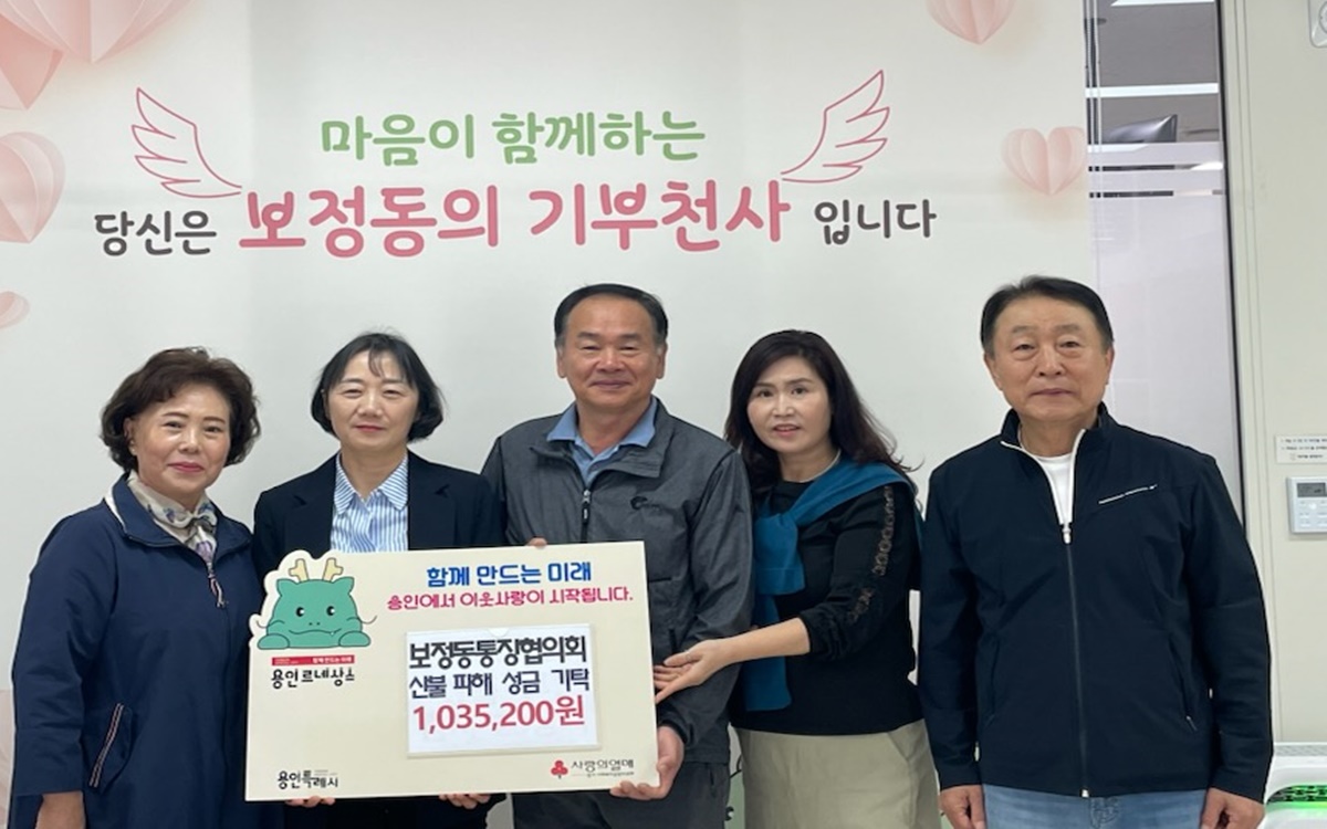 김건식 보정동 통장협의회 회장은 “작은 정성이지만 피해 주민들에게 위로가 되기를 바란다”며 “앞으로도 어려운 이웃과 함께하는 나눔 활동을 꾸준히 이어가겠다”고 전했다.