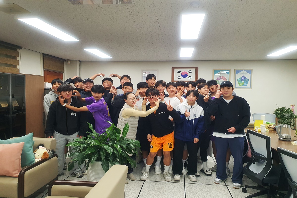 경기 종료 후, 김영신 교장은 축구부 선수들을 교장실로 초대해, 직접 준비한 따뜻한 차를 건네며 격려의 말을 전했다.