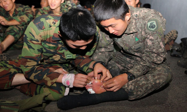 행군시에 탈수에 대비한 이온음료 분말가루 휴대, 물집 발생을 대비한 발뒤꿈치 패드, 반창고 테이핑, 바셀린과 스타킹, 대휴식시에는 발마사지와 스트레칭, 군장끈 조정, 연화시킨 행군용 전투화 준비, 어깨 등받이에 압축 스펀지 패드 부착을 통해 장거리 지속행군을 보장시켰다.