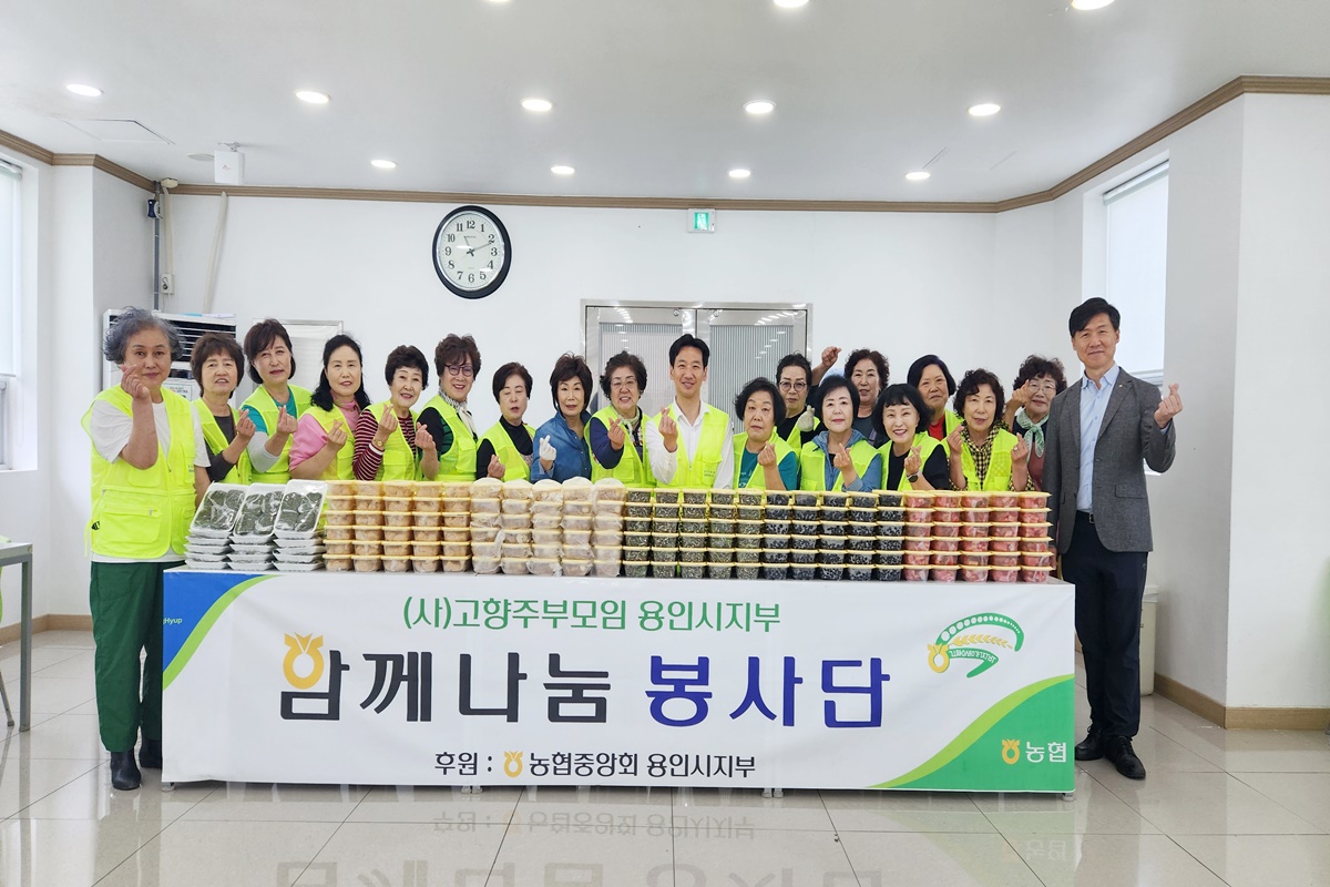 농협중앙회 용인시지부(지부장 박종복)와 고향주부모임 용인시지회(회장 조미자)‘함께나눔봉사단’은 5월「가정의 달」을 맞아, 소외계층을 위한 『밑반찬 나눔 봉사활동』을 20일에 실시했다.