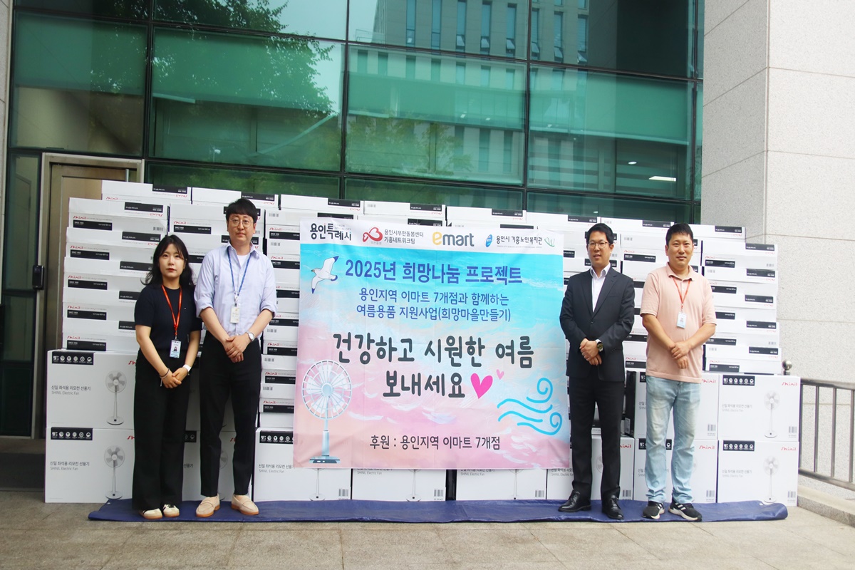 이번 여름용품 지원은 시와 이마트 ▲용인 ▲동백 ▲흥덕 ▲죽전 ▲보라 ▲수지 ▲TR구성점이 함께하는 ‘희망나눔프로젝트’의 일환으로 마련됐다. 시는 기흥무한돌봄네트워크팀(기흥노인복지관)과 함께 2100만원 상당의 여름용품을 취약계층에게 전달하고, 안부를 확인했다.