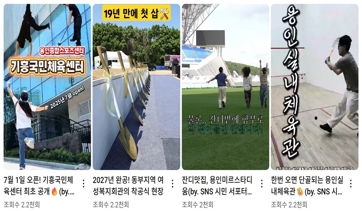 현재 공사 유튜브에 게시된 콘텐츠로는 용인시민체육센터, 구갈다목적복지회관, 용인실내체육관, 용인미르스타디움, 기흥국민체육센터 홍보영상 등이 있으며 해당 영상들은 평균 조회수 약 2,000회를 기록했다.