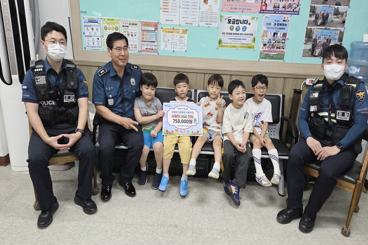 이날 사랑의성금 전달식에는 동부파출소 임채성 소장(경감)과 직원들이 함께 참석하여, 어린이들이 궁금해하는 것을 재미있게, 이야기를 해주기도 해서, 아이들을 마냥 즐겁게 해주었다.
