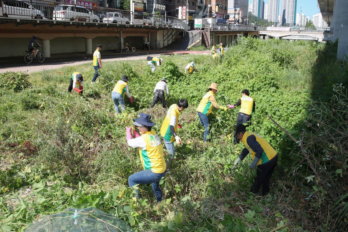 여름철 본격적인 생육기를 맞아 외래식물의 급속한 번식으로 생태계 교란 우려가 커지는 가운데, 신천지자원봉사단 용인지부(지부장 조호현·이하 용인지부)가 지난 12일 용인시 기흥구 신갈천 일대에서 생태계 교란 외래식물 제거 활동을 펼쳤다.