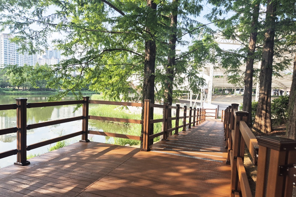 - 동백호수공원 야외무대~화장실 구간에 기존 계단 대신해 완만한 데크길 신설 -