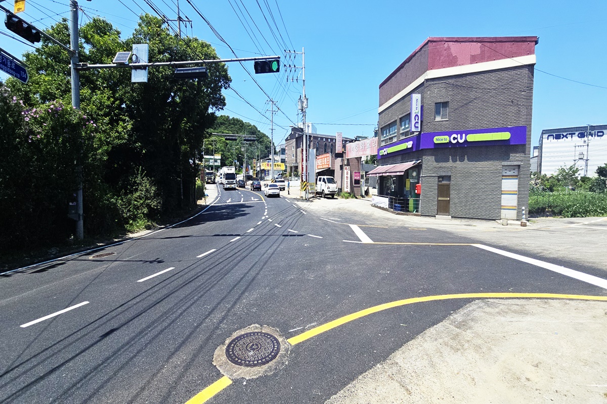 이번 공사는 기존 도로를 최대한 활용하고, 주변의 여유 공간으로 남아 있던 국‧공유지를 정비해 도로를 새로 개설하지 않고서도 단기간에 적은 예산으로 도로 개선 효과를 봤다.