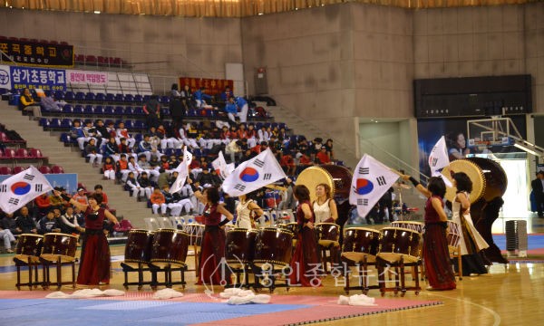 이날 체육발전에 공인 큰 각 가맹단체 회장에게 김학규 용인시체육회장이 공로패와 감사패를 수여하기도 하였으며, 식전행사로는 난타공연과 용인대학교 태권도 선수단과, 3군사령부 태권도 시범단의 격파와 송판깨기 등 다양한 태권도 무술 시범을 보여 관중들로부터 많은 박수를 받았다.