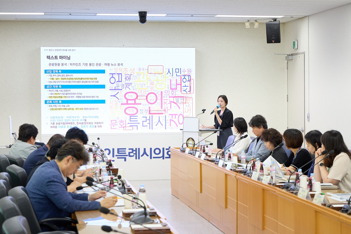 용인특례시의회 의원연구단체 관광도시브랜드(대표 황재욱)은 2일, 의회 대회의실에서 연구 활동의 중간성과를 공유하고 향후 연구 방향을 논의하는 중간보고회를 열었다.