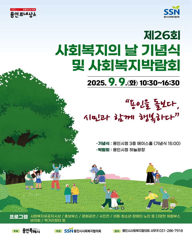 용인특례시(시장 이상일)는 9일 시청 하늘광장과 3층 에이스홀에서 ‘제26회 사회복지의 날 기념식 및 사회복지박람회’를 개최한다고 5일 밝혔다.