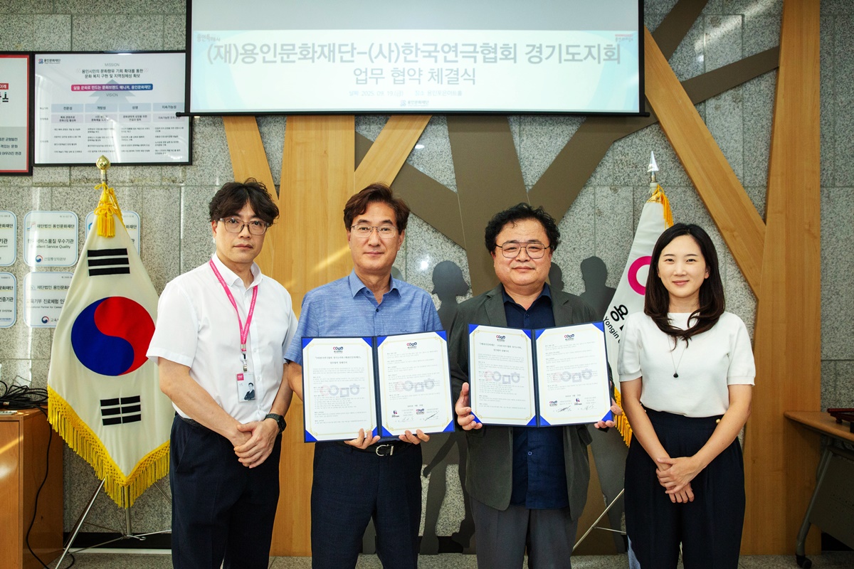 용인문화재단(이사장 이상일)은 지난 9월 19일 용인포은아트홀에서, 한국연극협회 경기도지회(지회장 한원식)와 업무협약(MOU)을 체결하고, 지역 연극 활성화 및 창작 역량 강화를 위한 상호 협력을 약속했다.