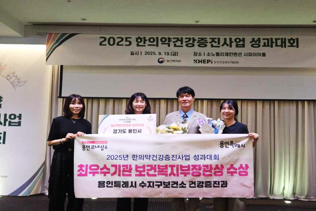 용인특례시(시장 이상일) 수지구보건소는 지난 19일, 보건복지부와 한국건강증진개발원 주관 ‘2025년 한의약건강증진사업 성과대회’에서 최우수기관으로 선정돼, 보건복지부장관 표창을 수상했다.