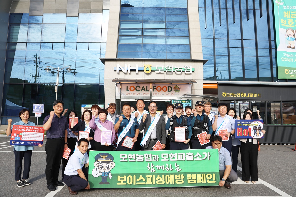 경기 용인 모현농협(조합장 최경춘)은 모현파출소(소장 김기원)와 함께 23일 오전, 관내 외대사거리에서 전기통신금융사기 피해예방과, 대포통장 근절을 위한 대국민 피해예방 캠페인을 전개했다.