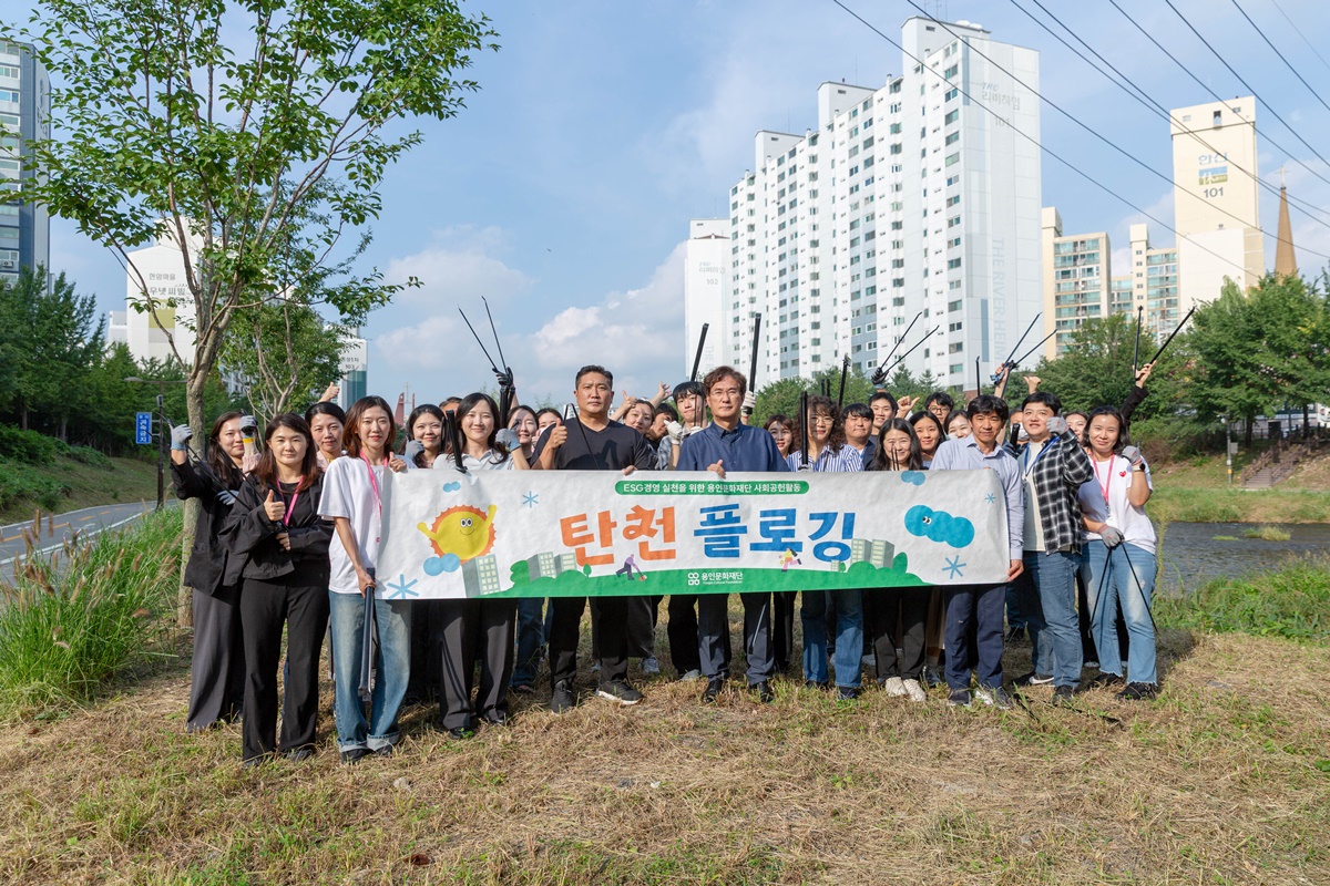 이날 김혁수 대표이사를 포함한 임직원 30여 명은 적극적으로 용인포은아트홀 인근 탄천 일대를 걷고 뛰며 환경을 정비했다.