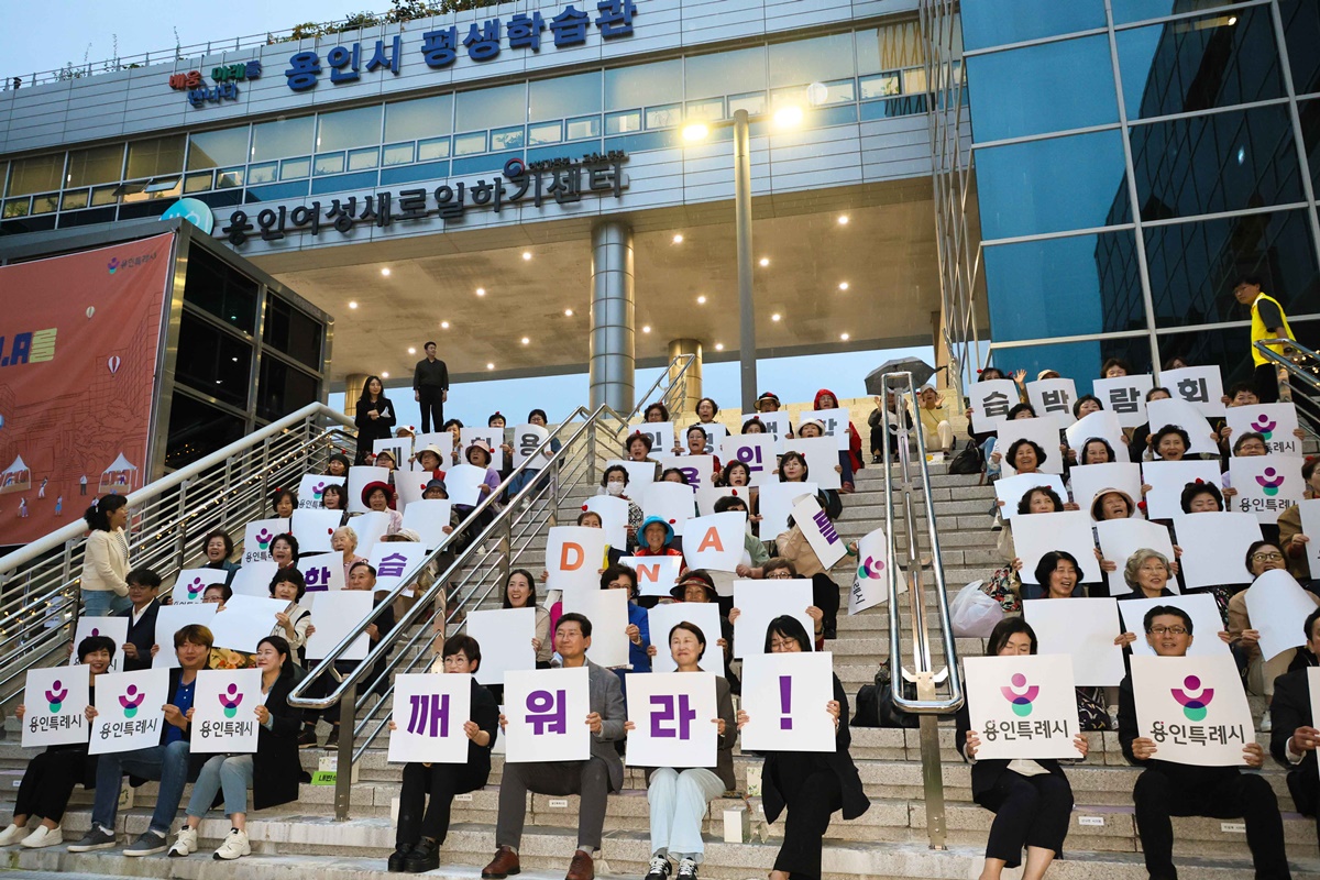 이 시장은 이날 기념식에 참석해 평생학습의 지속과 발전에 기여한 유공자 3명에게 표창장을 수여하고, 시민들과 함께 배움을 통한 성장과 실천, 연대의 의미를 공유하는 ‘용인 학습 D·N·A를 깨워라!’ 퍼포먼스에 참여했다.