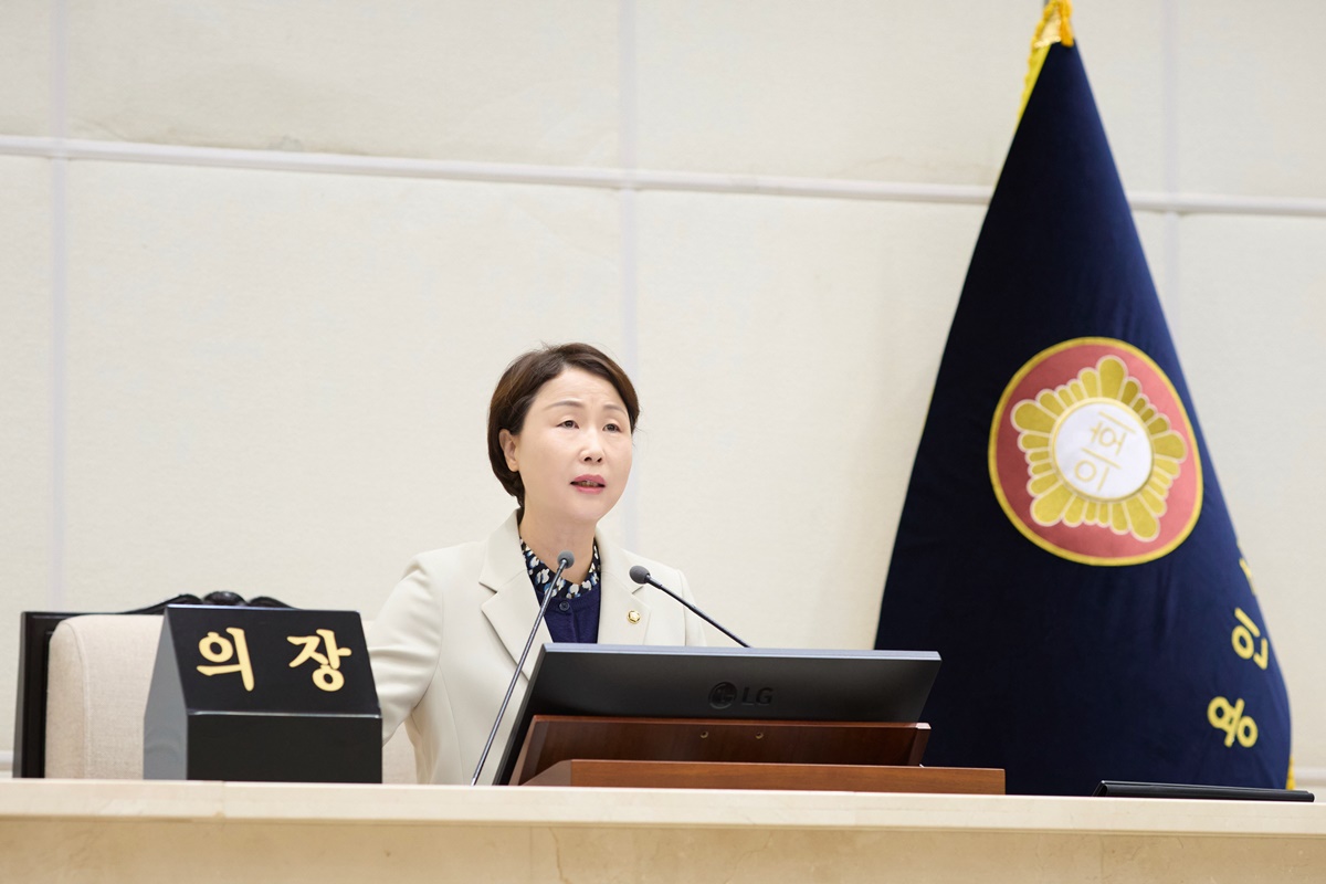 유진선 의장은 개회사를 통해 “지금의 계절에 가장 어울리는 단어인 ‘결실‘은 성실한 노력의 결과이자 지속을 의미하는 만큼, 한 해를 시작하며 가졌던 마음가짐이라는 씨앗이 이제 성과라는 열매로 이어지고 있다. 이러한 결실이 끝이 아니라 새로운 시작의 밑거름이 될 수 있도록, 서로의 지혜를 모으고 도전을 지속해가야 한다”고 밝혔다.