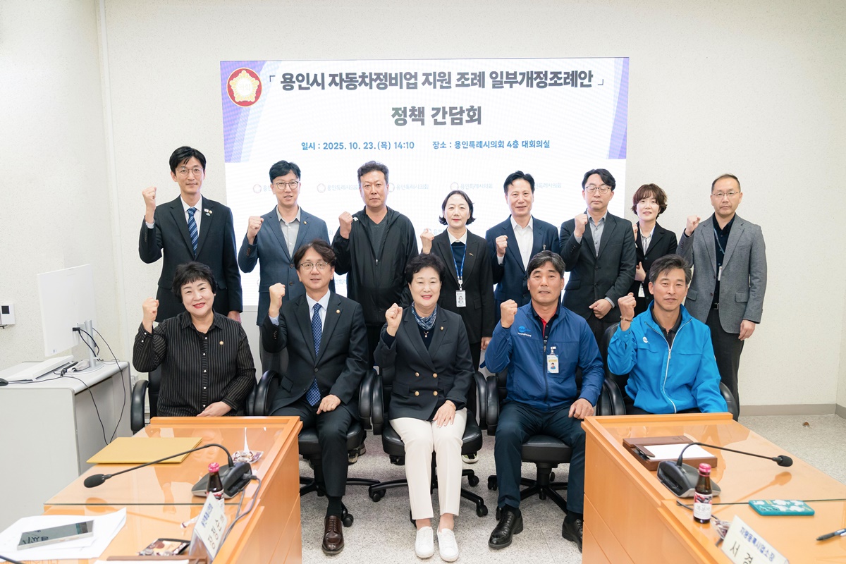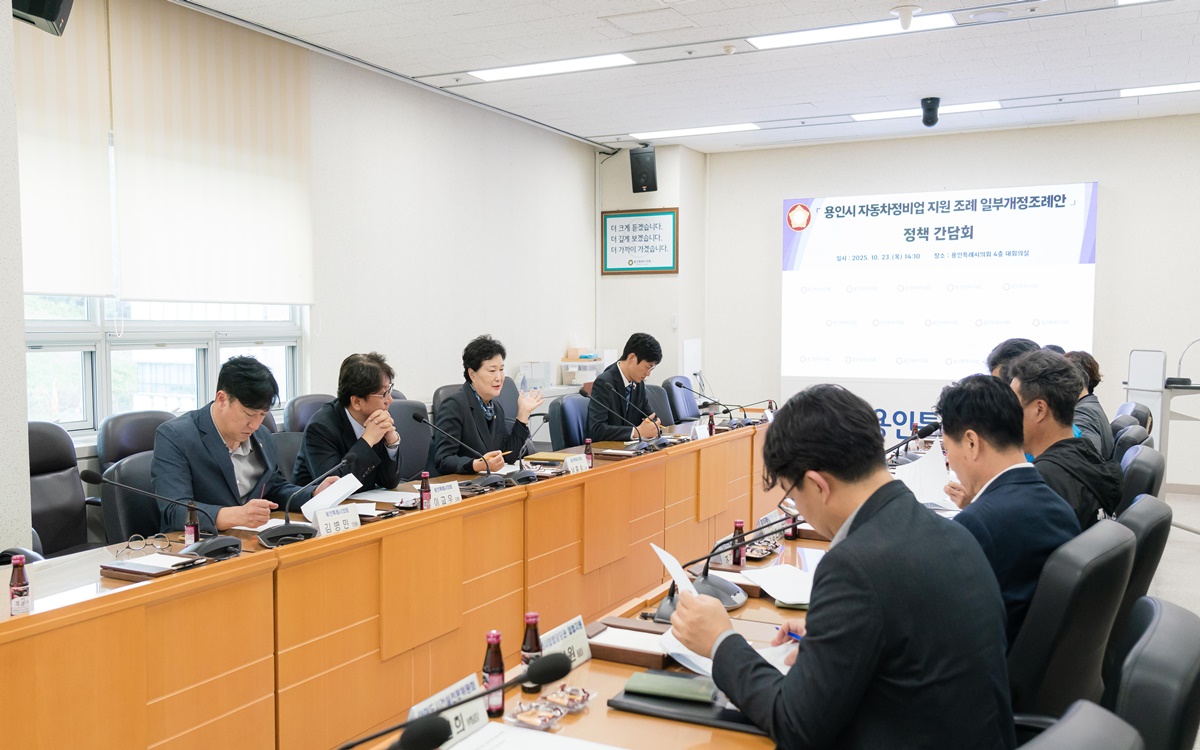 용인특례시의회 남홍숙 의원(중앙동·이동읍·남사읍/더불어민주당)은 23일, 의회 대회의실에서 ‘용인시 자동차정비업 지원 조례’ 개정을 위한 정책간담회를 개최했다.
