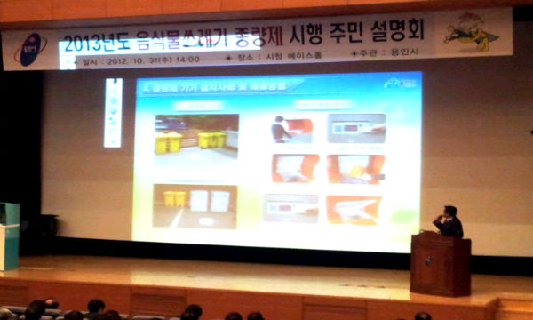 용인시(시장 김학규)가 2013년 1월 음식물쓰레기 종량제 전면 시행을 앞두고 지난달 31일 오후 2시 시청사 에이스홀에서 음식물류 폐기물 종량제 시행을 위한 주민설명회를 열었다.