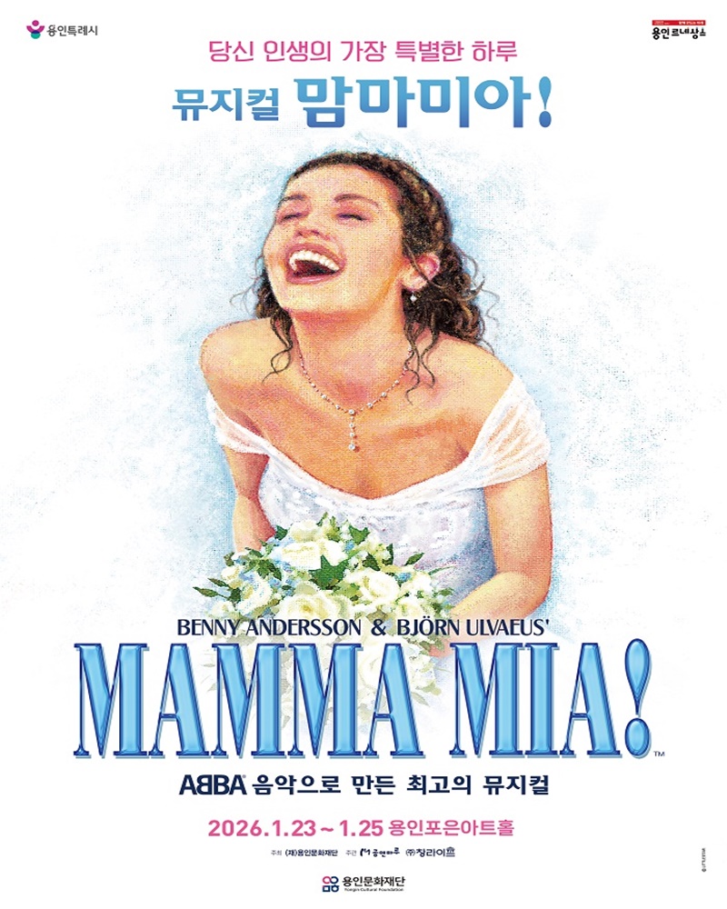 용인문화재단(이사장 이상일)은 오는 2026년 1월 23일(금)부터 25일(일)까지 뮤지컬 ‘맘마미아!’를 용인포은아트홀에서 개최한다고 밝혔다.