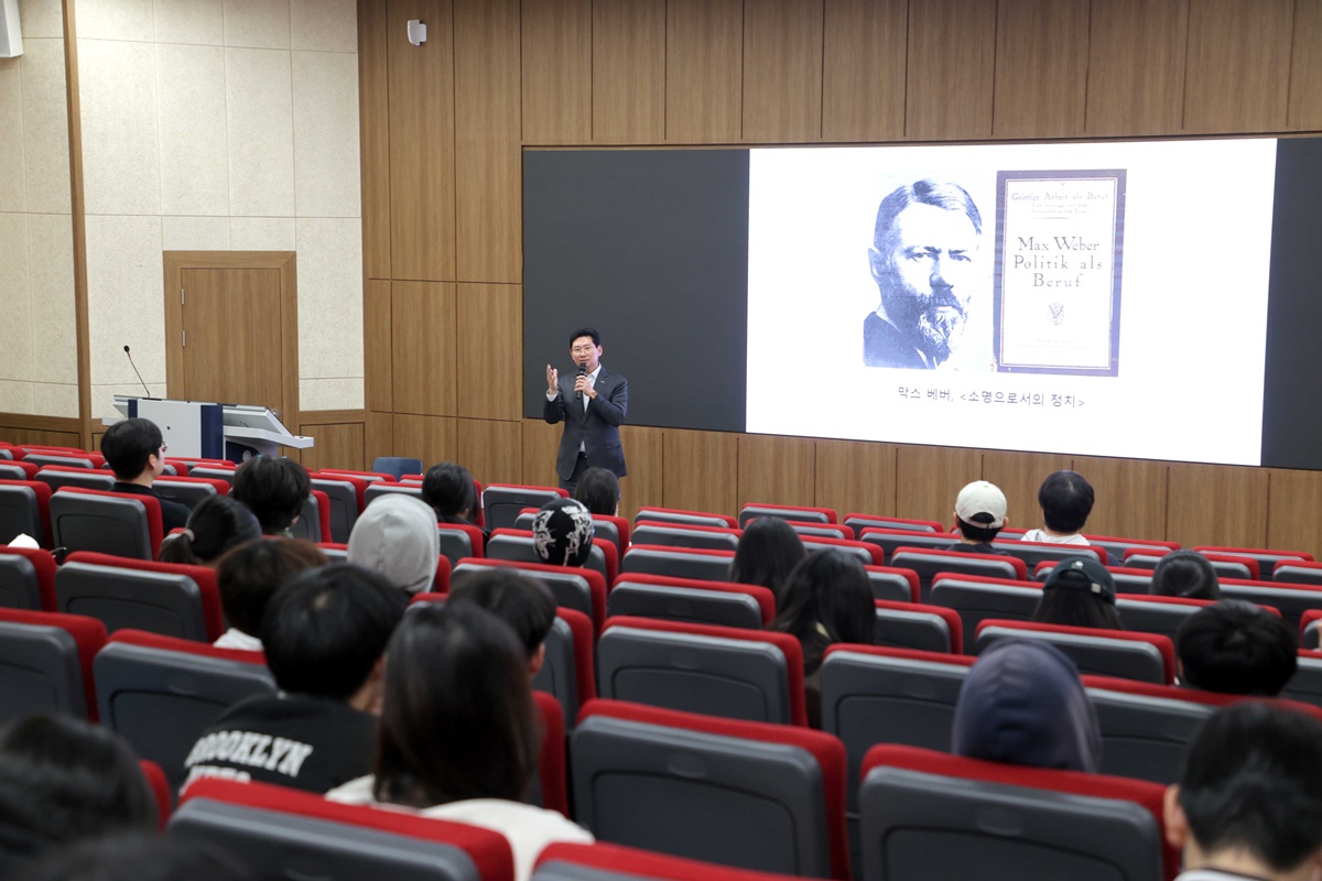 이상일 용인특례시장은 26일 오후 단국대학교 국제관에서 단국대 학생 100여 명을 대상으로, ‘사례로 배우는 리더의 리더십과 덕목’이라는 주제로 1시간 50분 동안 특강을 했다.