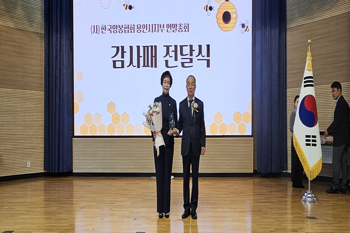 용인특례시의회 황미상 의원이 28일, 농업기술센터 대강당에서 열린 (사)한국양봉협회 용인시지부 총회에서, 용인시 양봉산업 발전에 기여한 공로로 협회로부터 감사패를 수상했다.