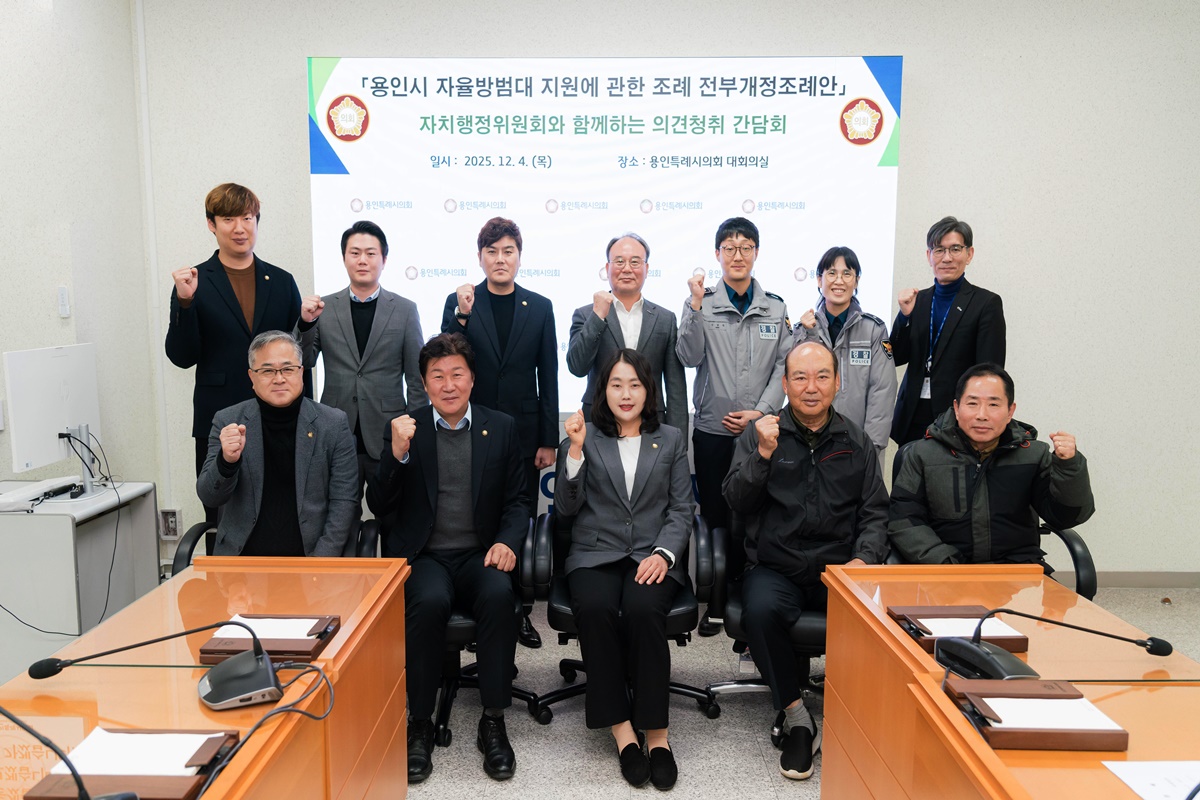 용인특례시의회 자치행정위원회(위원장 김진석)는 4일 의회 대회의실에서 ‘용인시 자율방범대 지원에 관한 조례 전부개정조례안’에 대한 간담회를 개최했다.
